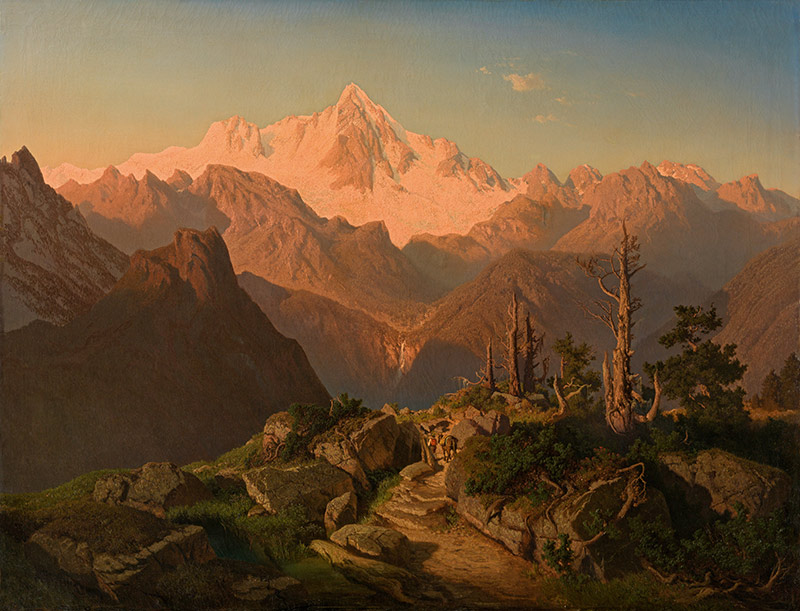 Max Haushofer: Večerní nálada v horách, olej na plátně, 122 x 158 cm,