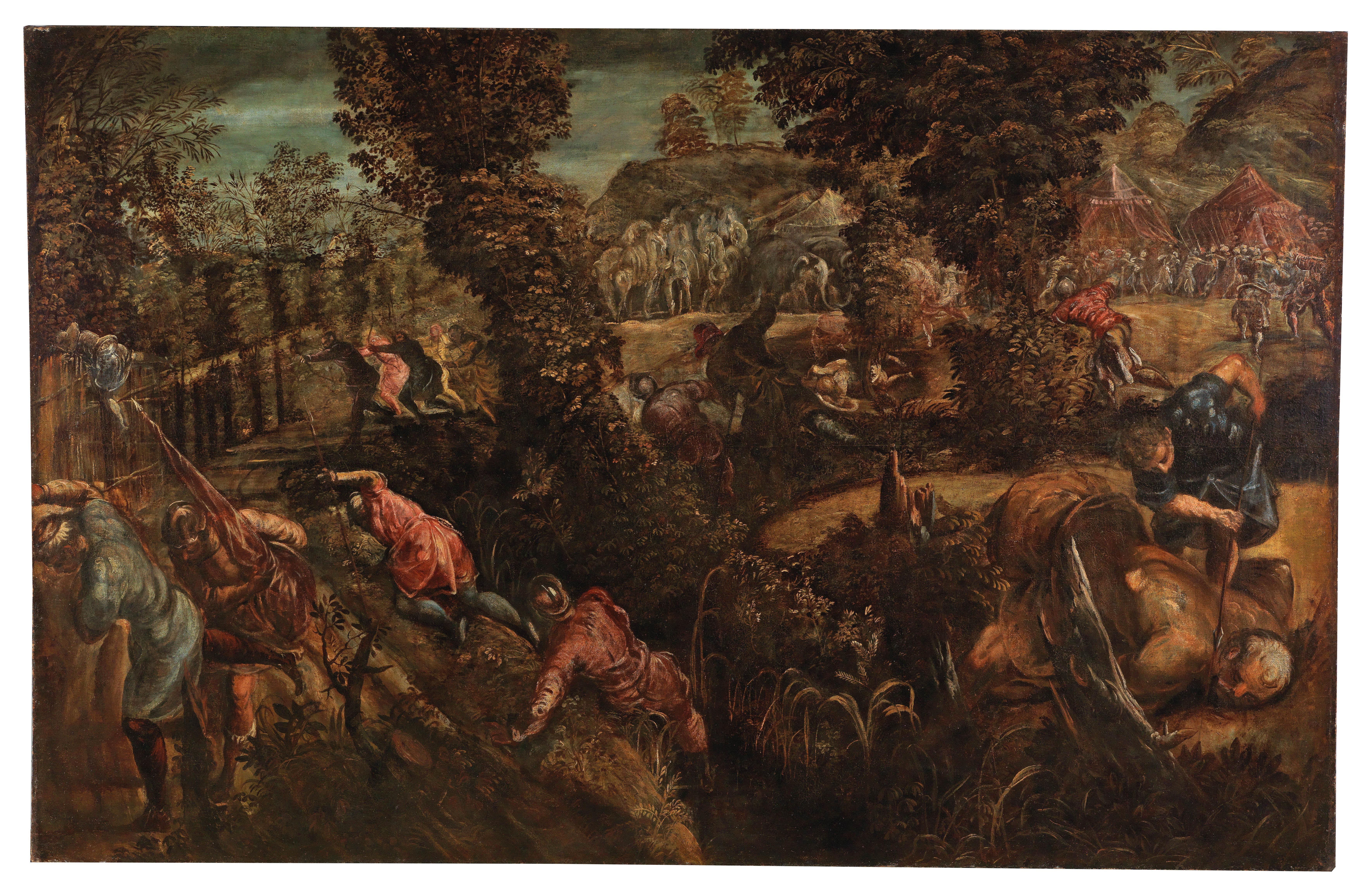 Jacopo Tintoretto, Bitva Filištínů s Izraelity (David a Goliáš), olej na plátně, 146 x 230,7 cm,