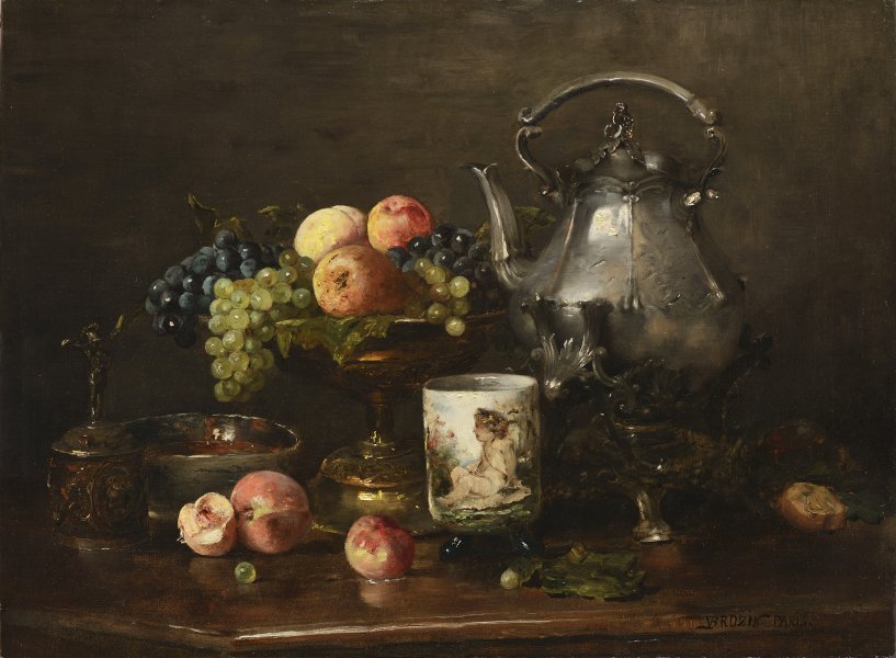 Václav Brožík: Zátiší s ovocem a konvicí, 1896
