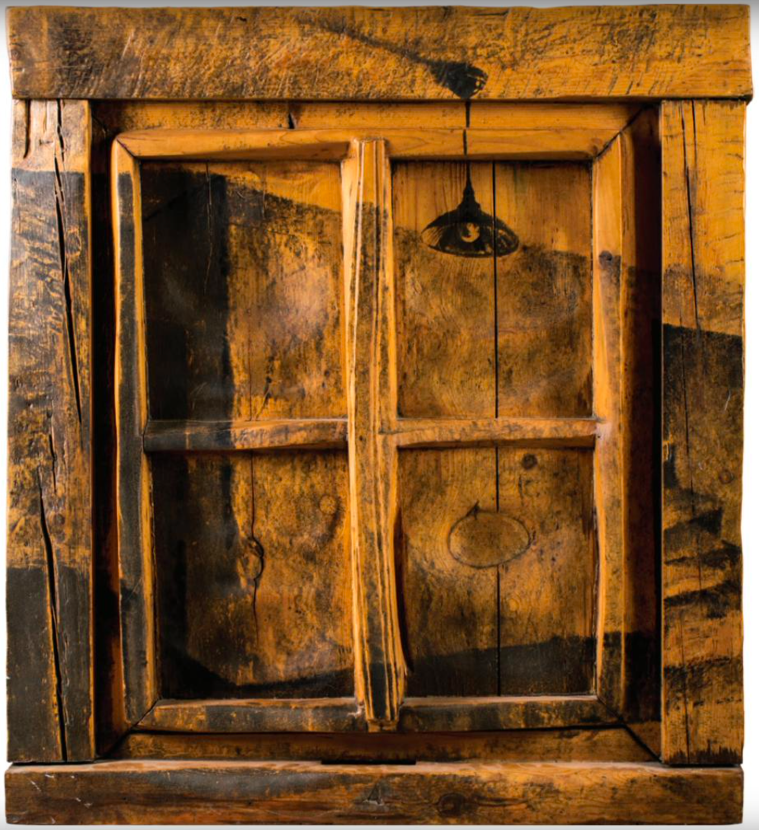dřevo, sítotisk, 106,5 × 98,2 × 9,2 cm,