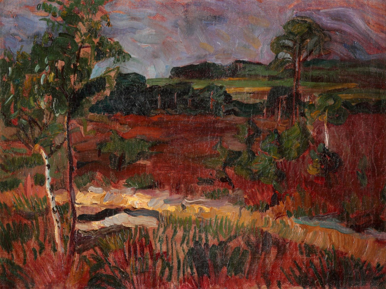 Bohumil Kubišta: Krajina s vřesovištěm, 1907, olej na plátně, 45,2 x 60 cm, Adolf Loos Apartment and Gallery 19. 3. 2023, vyvolávací cena: 8 900 000 Kč (+21% provize)