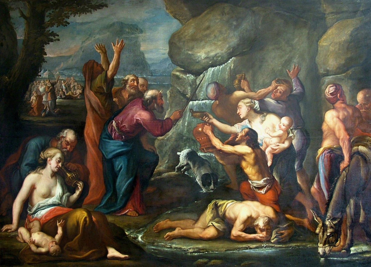 Prvním nabízeným dílem je monumentální plátno Mojžíš vyrážející vodu ze skály antverpského manýristy Jacoba de Backera (1540/1555–1585/1595). Dílo vzniklo na konci 16. století a o autorství De Backera mluví přípis z roku 1717 na zadní straně obrazu (JA. De. Bäcker). Umělec tvořil na konci 16. století pod vlivem italského manýrismu (zejména Giorgia Vasariho) v Antverpách, o jeho životě je však známo velmi málo, jisté nejsou ani jeho základní životopisné údaje, které se v literatuře často liší. Nizozemský malíř, životopisec a historiograf Karel van Mander zmiňuje ve svém Schilderboeku vydaném na počátku 17. století, že Backerovými učiteli byli Antonio van Palermo (italský malíř usazený v Antverpách) a později Hendrick van Steenwijck starší, v jehož dílně měl malíř pracovat.